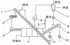 The machine is designed with the principles of heat transfer and heat radiation material through feed screw into the dryer, the housing rotating bundle under agitation peripheral shovel full contact with the heat transfer tubes, so that the water was evaporated, while promoting shovel the material from the feed end to the discharge end of the conveyor. Drying generally countercurrent heating, it may also be needed downstream heating.