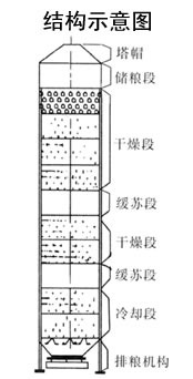 Main tower structure: the grain storage segment, drying section, tempering section, dryer section, tempering section, cooling section, row food agencies.